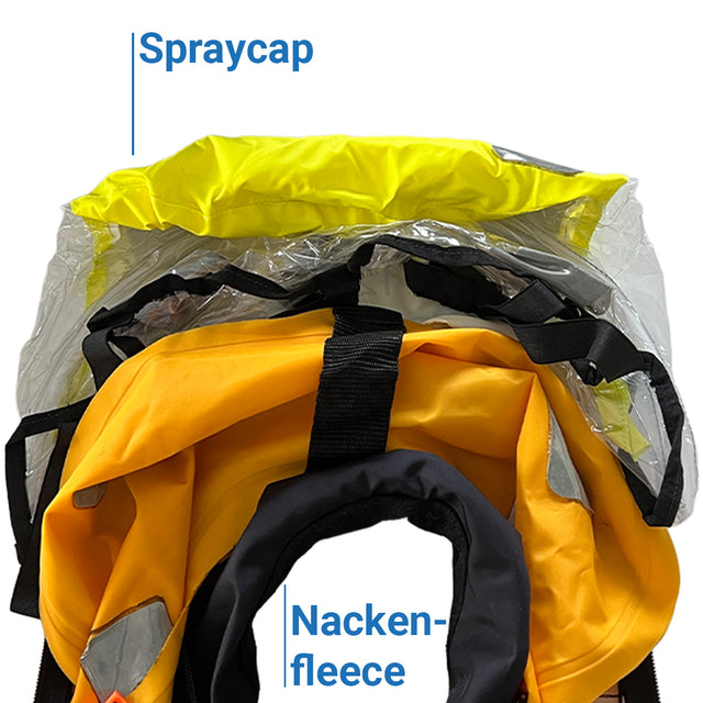 Kontrolliere mit einem Blick die Einsatzbereitschaft der Rettungsweste durch das Sichtfenster in der Schutzhülle. Der Quickburst-Reißverschluss verhindert ein ungewolltes Öffnen und Scheuern der Schutzhülle und der integrierte Harness mit einem D-Ring ermöglicht das Einpicken an Bord.